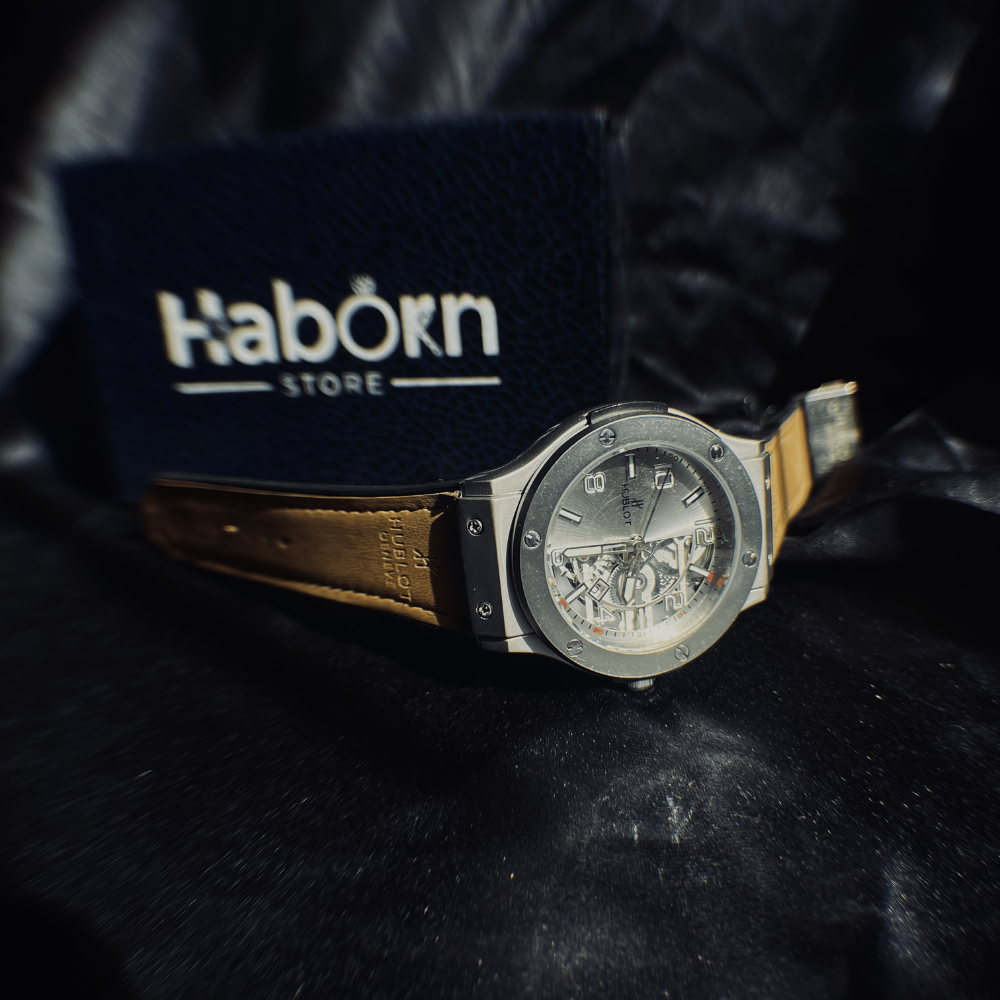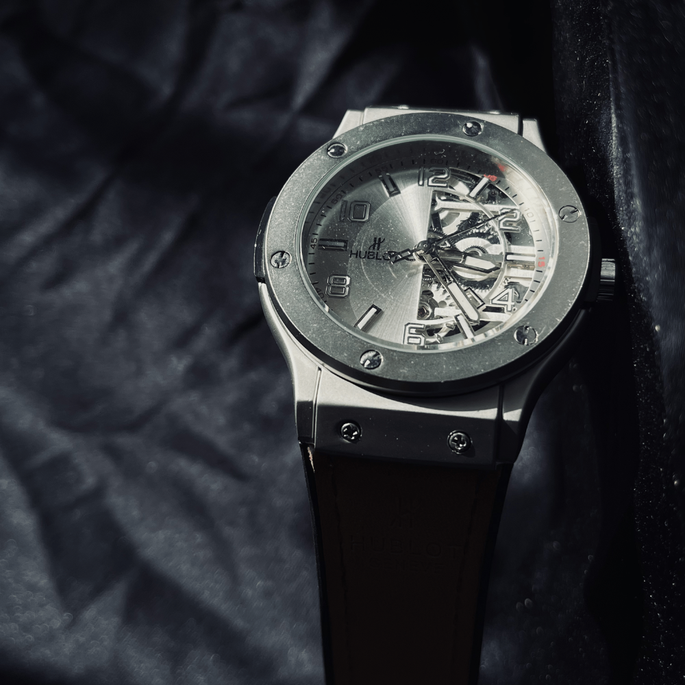 Stand out with bold innovation and luxury-inspired design in the Hublot Big Bang Half Skeleton – Chronograph (Inspired Edition). Featuring a striking 44mm open-worked skeleton dial, this watch showcases visible mechanical-style gears with elegant silver accents, delivering a powerful and modern wrist presence.