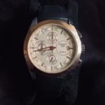 Powered by a reliable quartz movement, the watch features a fully working chronograph along with a date display for everyday practicality. The stainless-steel case is paired with a comfortable leather strap, offering durability with a touch of luxury. Finished with a butterfly clasp with push buttons and water-resistant construction, this chronograph is perfect for both formal wear and active lifestyles.